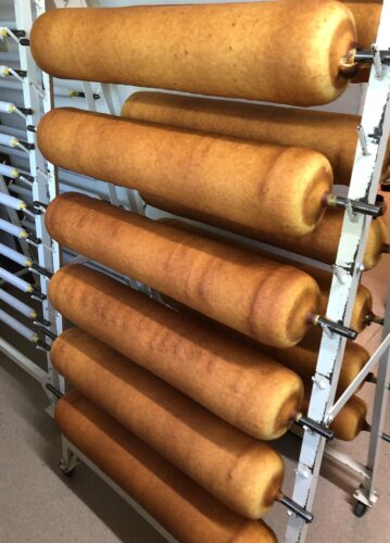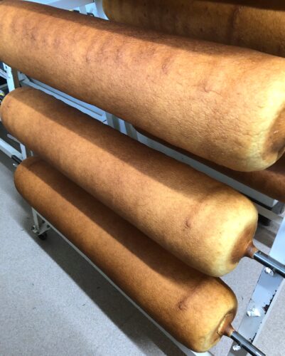 お客様用に、販売されているバームクーヘンは、指定のサイズにカットして箱詰めをしてから店頭に並べられています(^▽^)/切らない状態のバームクーヘンを見れるのは、焼いた日しか見れません!ですので、なかなか見られないバームクーヘンの状態を、ここでお見せしようと思います( *´艸`)毎回、悩みながら焼いております。今回のバームクーヘンはきれいに焼きあがりました!(。-`ω-)