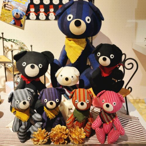 「あいくー」とは会津木綿を使って作った「くま」の「ぬいぐるみ」です。